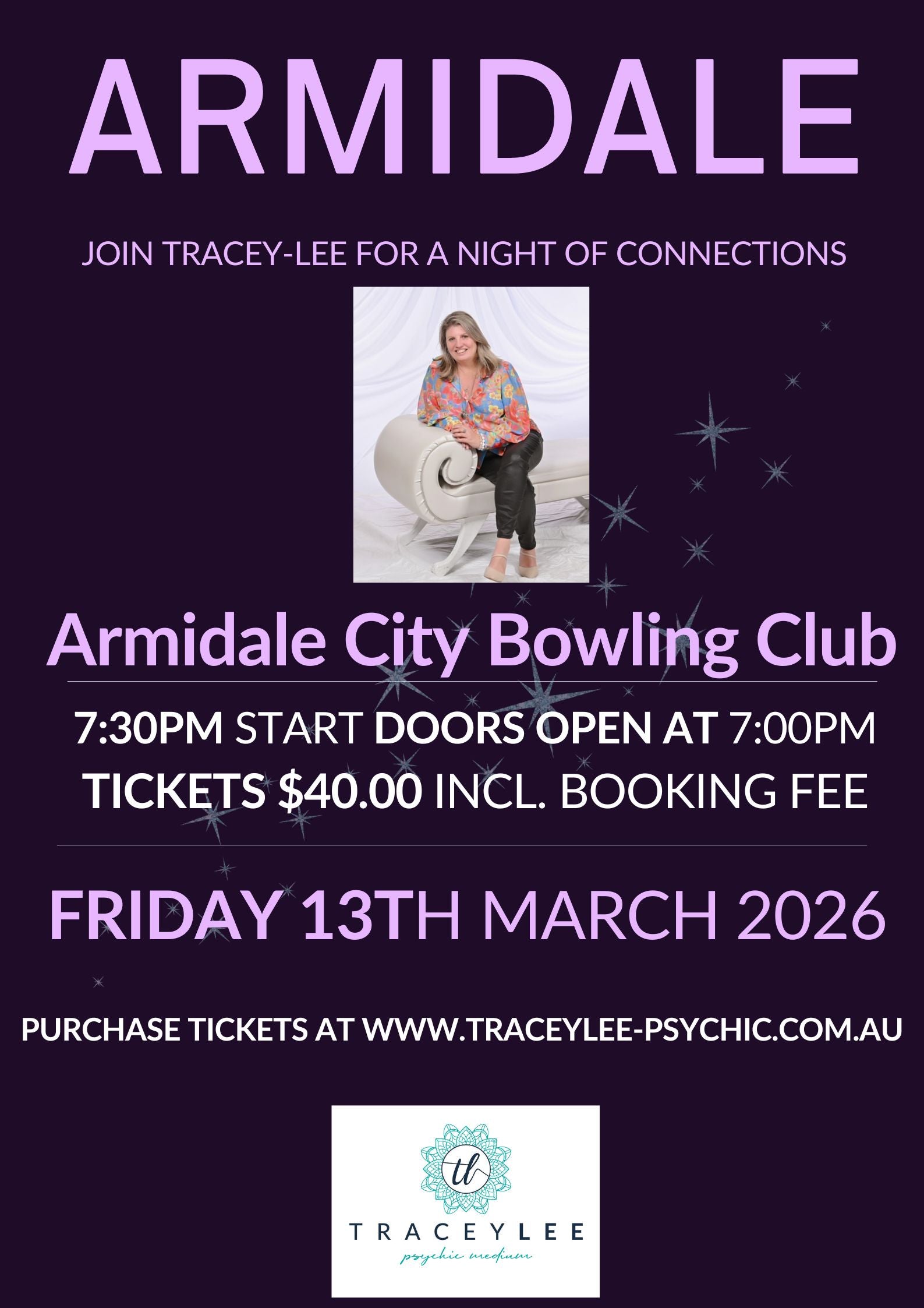 Join us for a night of connections, revelations, and powerful messages from beyond as renowned psychic medium Tracey-Lee takes the stage! With years of experience and an incredible gift for connecting with the spirit world, Tracey-Lee will deliver heartfelt messages, uncanny insights, and uplifting connections that will leave you amazed.